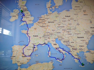 This map shows you a rough idea of where we have been since leaving home, and where we will potentially be going up until we get to Ireland. Have changed the ferry crossing locations a couple of times, but other than that.. you get the general idea!