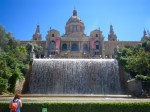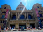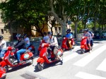 We rode past some of the Olympic venues, and next stop was to be the National Museum d’ Art… set high on a hill with prime views of the city. There were many people sitting on the steps to the museum, in the glorious sunshine and enjoying the vista and buskers. The waterfall and views over busy, bustling Barcelona, simply breathtaking. The museum a work of art, as was the fountain in front of it. So high was it, that they had escalators down to the gardens below (got love that). To add to the spectacle, while we were there, along came a group of red Vesper riders. There must have been at least twenty of them!
