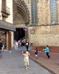 Next stop was the old town. This is where the bike comes into it’s own because we can ride right into the town centre, park and walk. There are bikes a plenty in Barcelona. Once again, we were delighted with the buildings, churches, the shops, cafes and life in general. Bought some lovely crusty bread, sausage and cheese for tea.