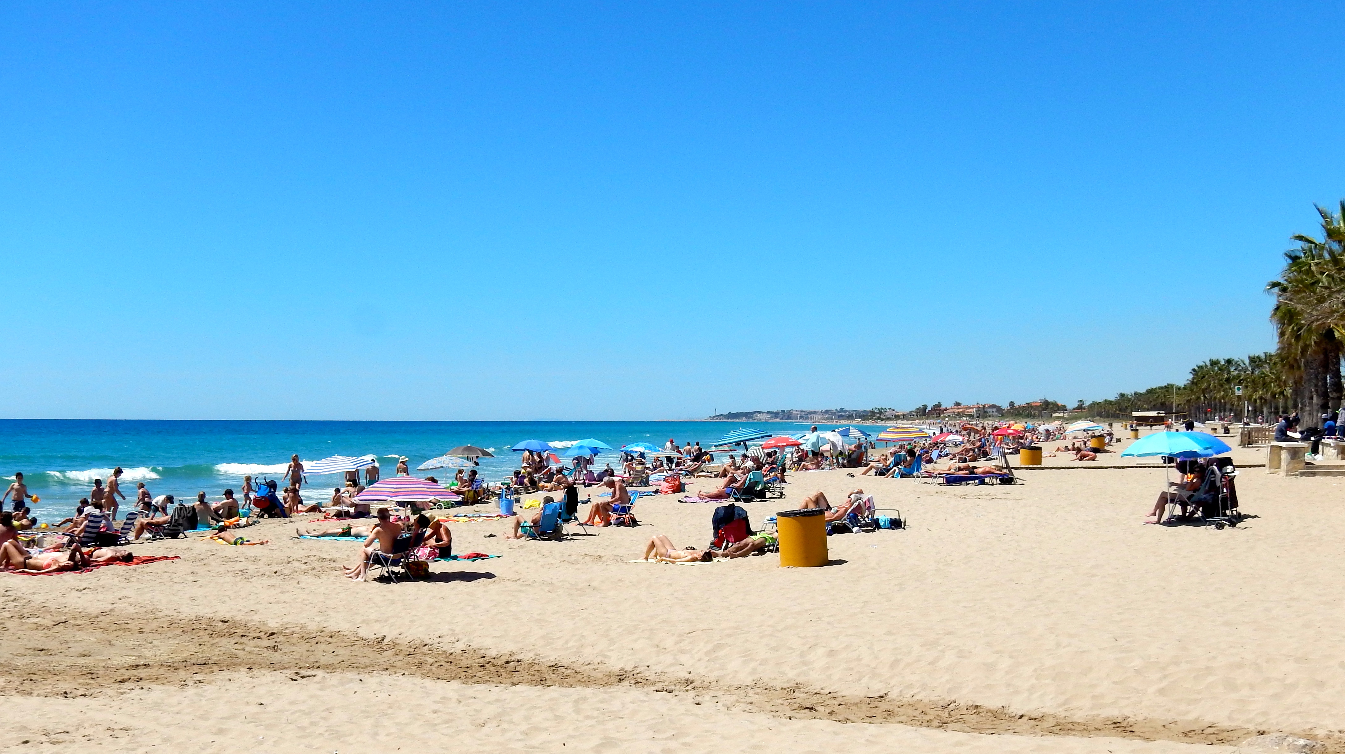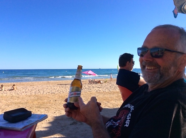 Woke up to a glorious sunny day by the beach at Camping Las Salinas, Tarragona/ Espania. Walked the 20 paces to the beach and cantina for coffee and toasted rolls. Have a strong suspish that they may have been yesterday’s rolls, but with a bit of butter and jam, they were not too dry, but VERY crunchy!