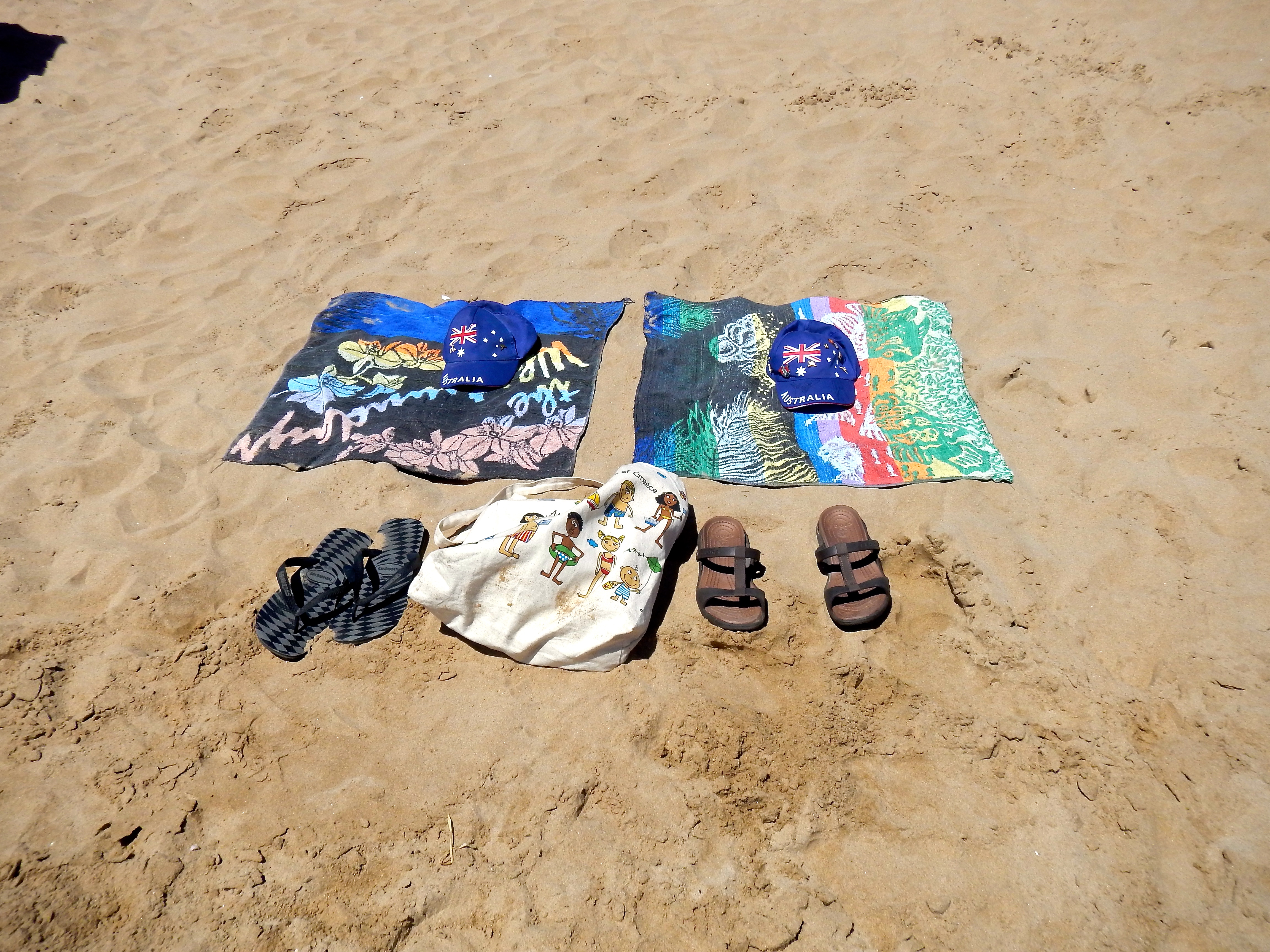Off the bike, into the cabin, togs on, we hit the beach and the water…. such bliss! Sun baked for a bit, then walked the beach, before coming back for another swim, more sun then back to the cabin for a shower. Our beach towels double as general towels and are a big beach towel cut in half.. well we don’t have room on the bike for two big towels, so.. ‘necessity is indeed the mother of invention’!