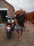 He came back with a pair of pants each for us ‘to trial’. Thanks Macna … just brilliant. Met Johann (nice guy too) who also gave us some stickers for the bike!