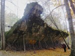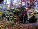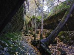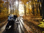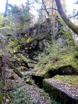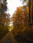 Before going to see the actual ‘Wolf’s Lair’, or what remained of the bunkers, we took a ride through the woods, because we had glimpsed the blown up remains of other buildings. We did not initially realise that these were all a part of the huge complex. The sun was shining brilliantly through the gold and amber autumn leaves that still remained on the trees. There was a thick golden carpet of leaves on the ground too… just equisite! We were the only ones in this part of the forest and it felt magical. It was so very peaceful, so spectacularly beautiful! Once again we found ourselves reflecting on and talking about the horrors of the past that are a stark contrast to the beauty and serenity of today.